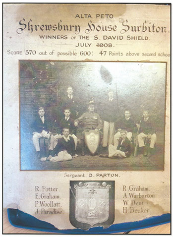 He attended Shrewsbury House Preparatory School where he was part of the team which won the St David Shield in 1908 with a score of 570 out of a possible 600 points. He then went on to Abingdon School in Berkshire.