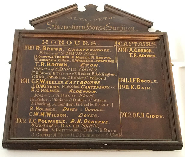 He was awarded Honours at Shrewsbury House Preparatory School in 1911. Attended Aldenham after SHS.